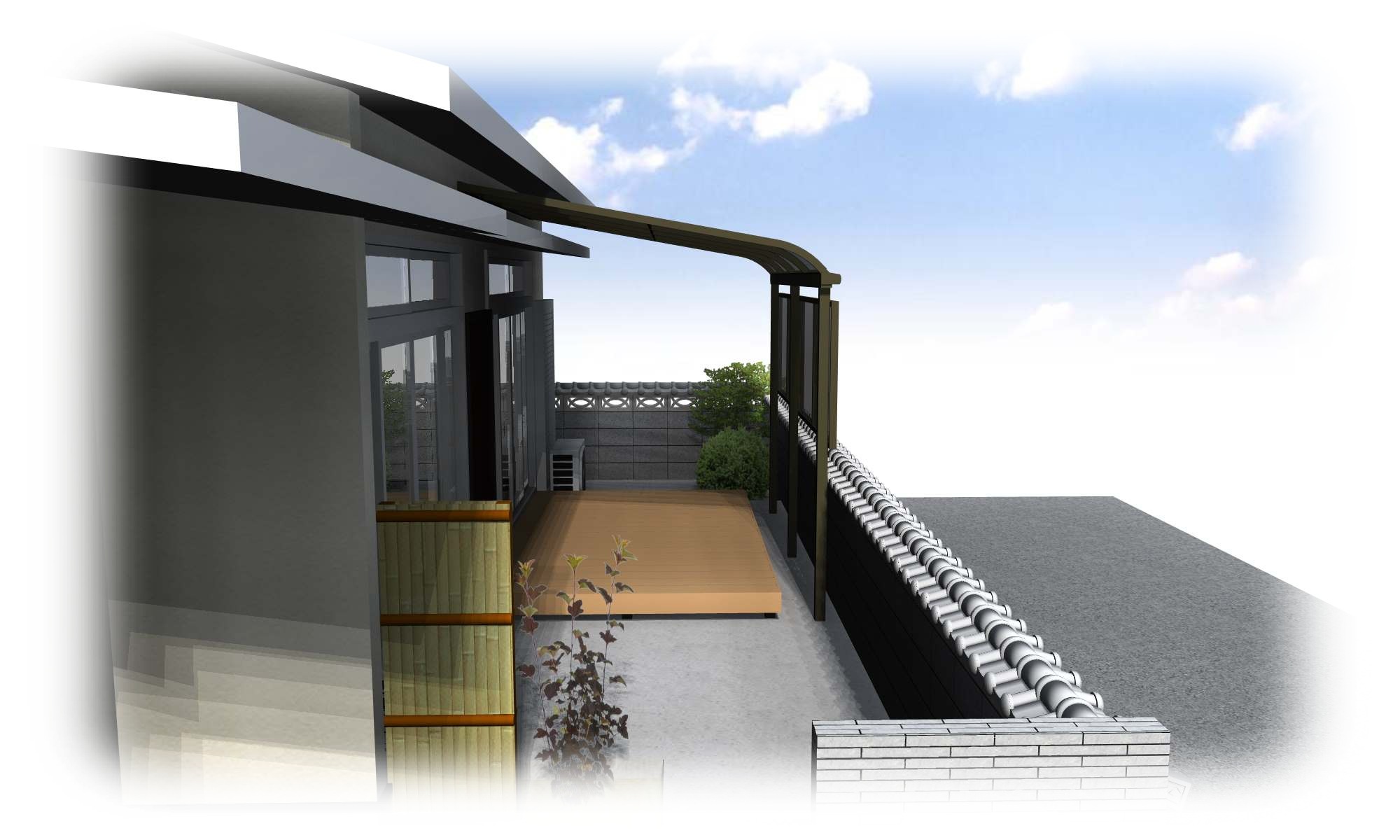 福岡・佐賀の外構・エクステリア・ガーデニングは太陽ハウジングへ > ブログ > テラス屋根・デッキ(イメージパース) > #0000 – 3.
